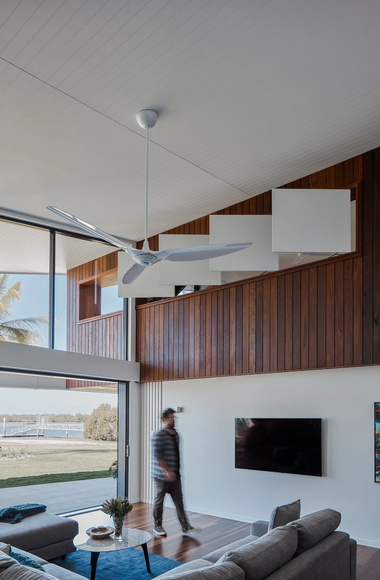 An upstairs retreat was also added which captures views out across the bay and drags prevailing sea breezes through to the lower living areas through the double height void.