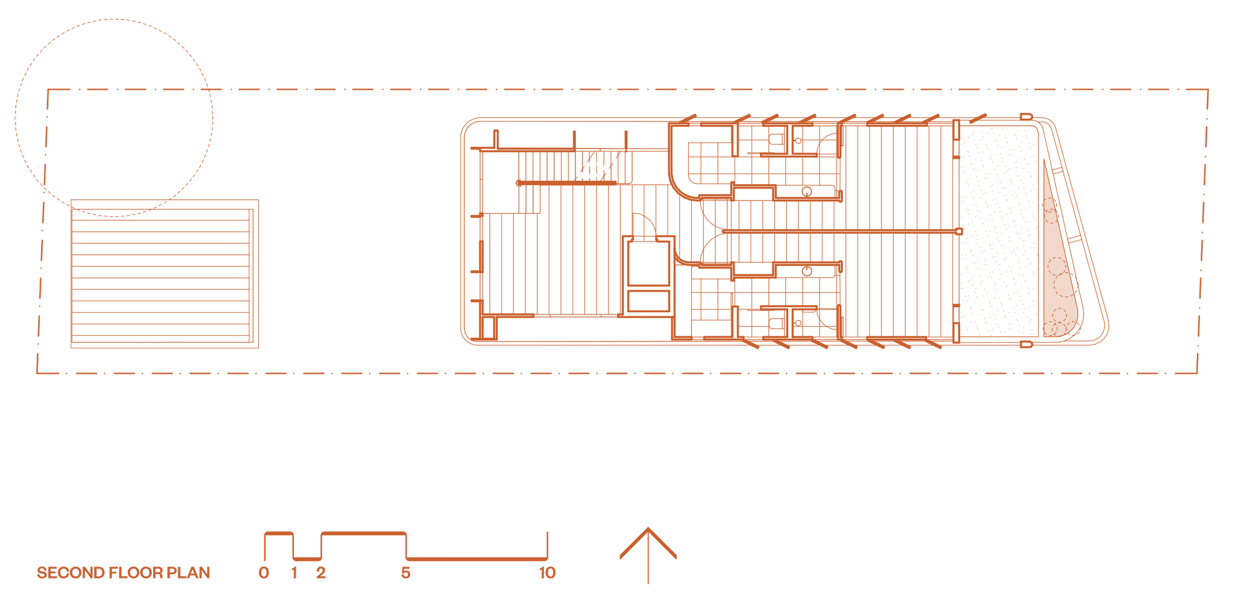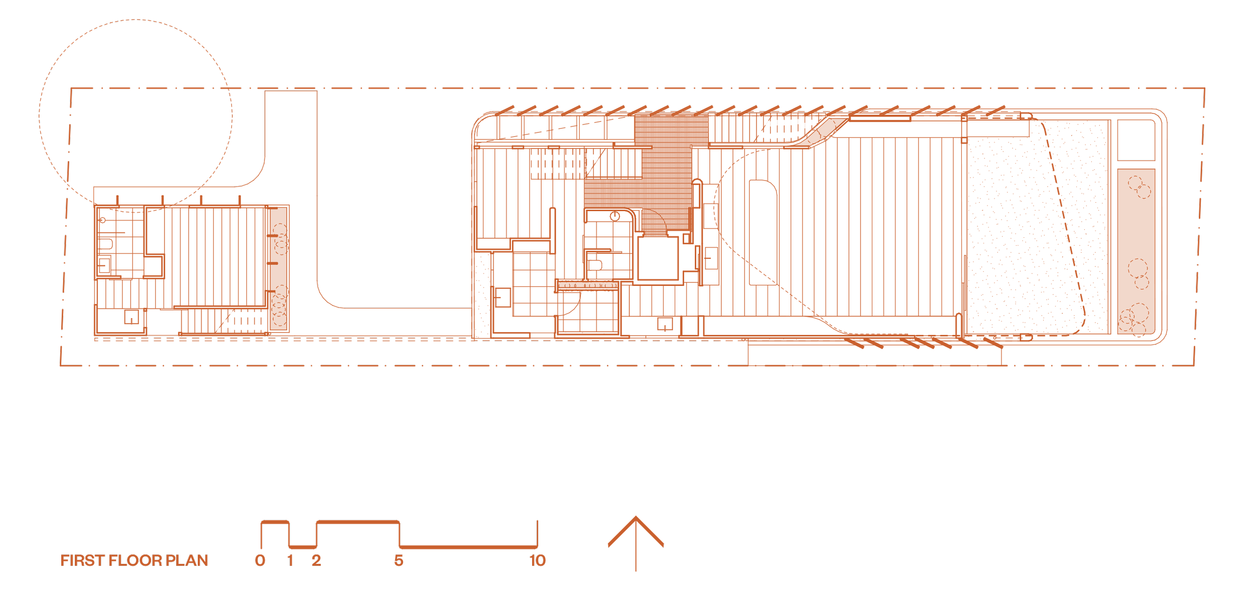 At the heart of the home is a serene courtyard with a private pool, framed by lush greenery. It offers a private space for lying in the sun, ocean views and easy entertaining - protected from prevailing winds yet still connected to the ocean. An intentional layer of green on the building strengthens the calming and intimate connection to landscape, providing a feeling of cool protected shade.