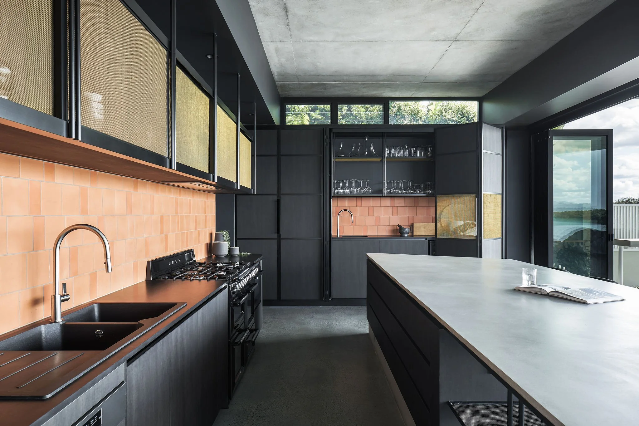 Living areas are housed in a ground floor shell of rich, dark and tactile materials. Water views are revealed slowly and intentionally.