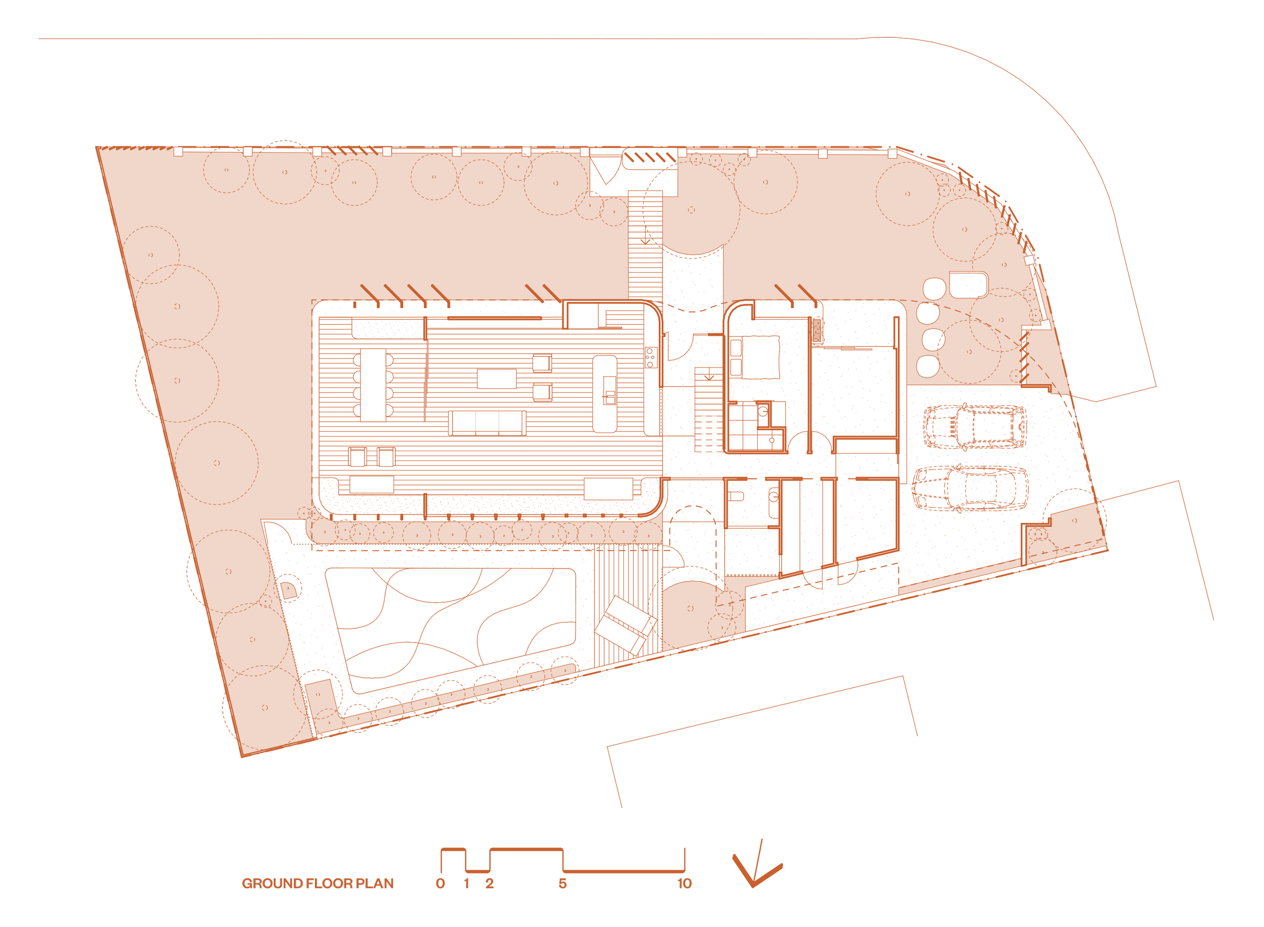 When designing the house, it was important for us to add something to the street that would sit comfortably within the existing scale of its residential context. This led to the development of a series of horizontal datums that help reduce the vertical scale of the building while strengthening its horizontal connection to both streets.