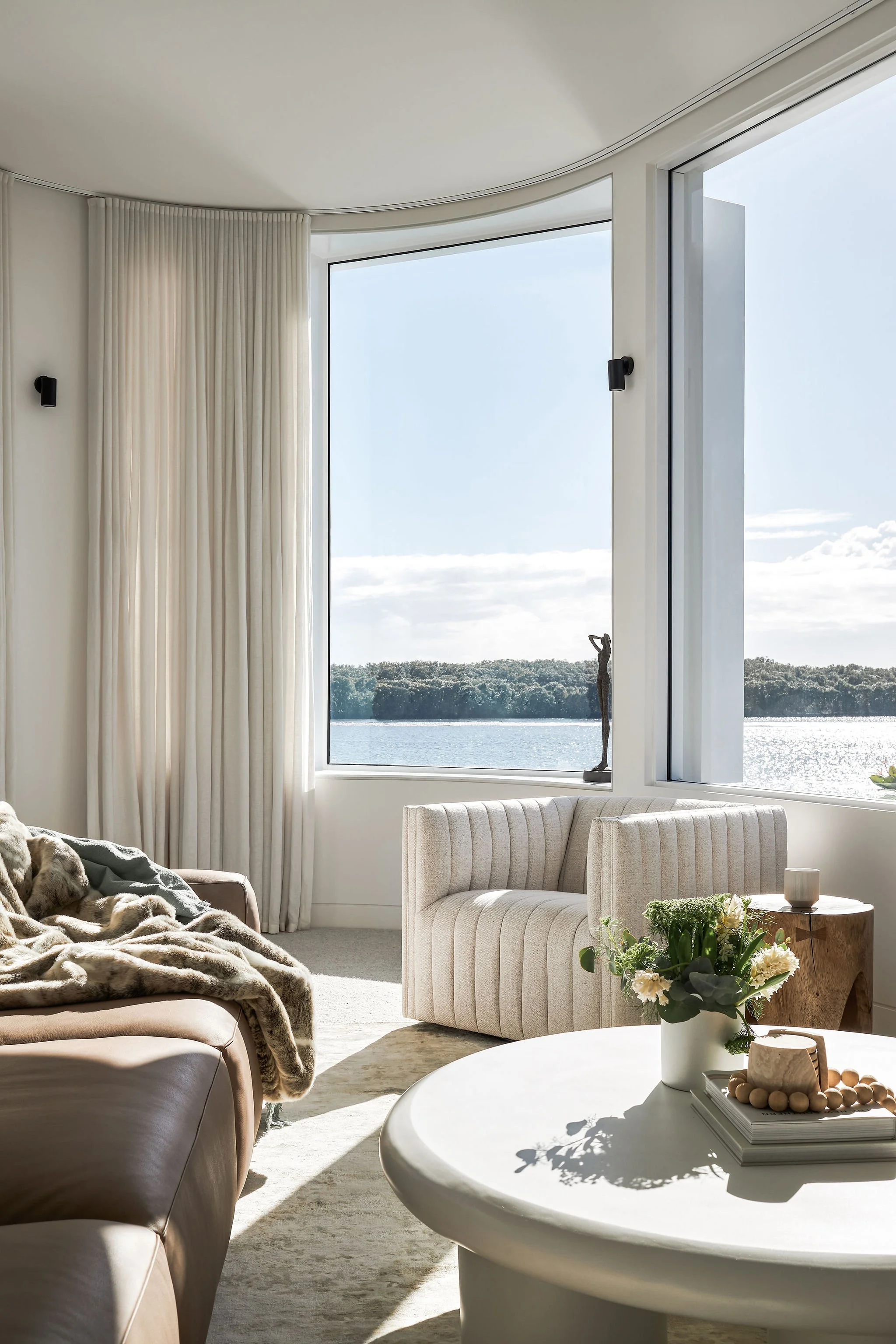 Living areas are housed in a ground floor shell of rich, dark and tactile materials. Water views are revealed slowly and intentionally.